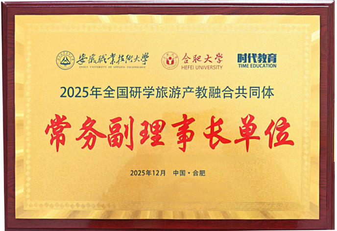 12月6日,以“数智赋能·融合创新——构建研学旅游产教融合新生态”为主题的全国研学旅游产教融合共同体成立大会在合肥隆重召开。皖北经济技术学校党委副书记、校长明世超受邀出席大会,并代表学校接受“全国研学旅游产教融合共同体副理事长单位”授牌,标志着我校在研学旅游产教融合领域的发展获得全国行业层面的认可。